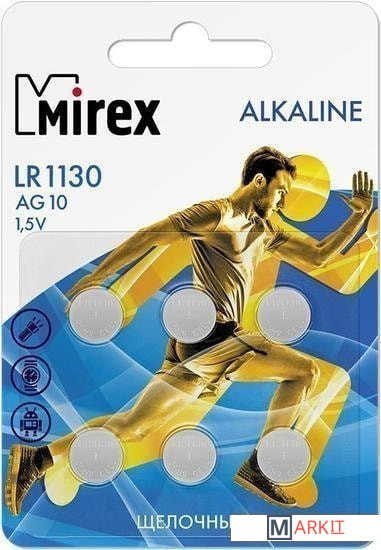 Markit » Батарейки, аккумуляторы, зарядные » Батарейка Mirex LR1130 (AG10) блистер 6 шт. 23702-LR1130-E6