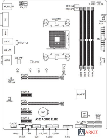 Markit » Материнские платы » Материнская плата Gigabyte A520 Aorus Elite (rev. 1.0)