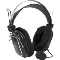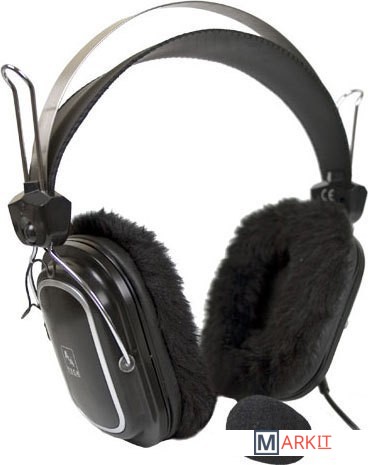 Недорогая гарнитура для ПК. Имеет саморегулирующееся оголовье и гибкий держатель микрофона, комплектуется двумя комплектами амбушюр - кожаными и меховыми.