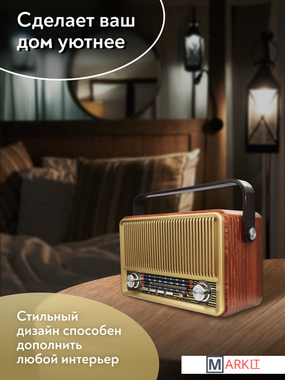 Радиоприемник MIRU SR-1028 коричневого цвета имеет ретро дизайн, простой функционал и обеспечивает приём сигналов в диапазоне FM, AM и SW. Аналоговый способ настройки частоты предполагает более точное и быстрое улавливание нужного канала. Для улучшения качества сигнала у радиоприемника имеется поворотная телескопическая антенна. Радиоприемник SR-1028 может работать как от сети 220В, так и аккумулятора. Устройство оснащено удобной, складывающейся ручкой, благодаря чему его будет легко переносить. Органы регулировки громкость и смена диапазонов расположенны на передней панели приемника. Также предусмотрено проигрывание с USB и microSD накопителей. Данный радиоприемник отлично подойдет для туристов, дачников и просто любителей отдыха на природе