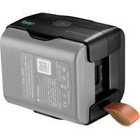 Обладает двумя разъемами для батарей и возможностью их горячей замены. Обеспечивает емкость 57 Вт/ч, что равно 3 емкостям стандартного аккумулятора Sony, 4 емкостям аккумулятора Canon или 5 емкостям аккумулятора iPhone. Оснащена выходным разъемом USB-A и универсальным разъемом USB-C, который можно использовать и на вход, и на выход - можно зарядить любое портативное устройство, от камеры до планшета, ноутбука и, конечно, моторизированной головы.